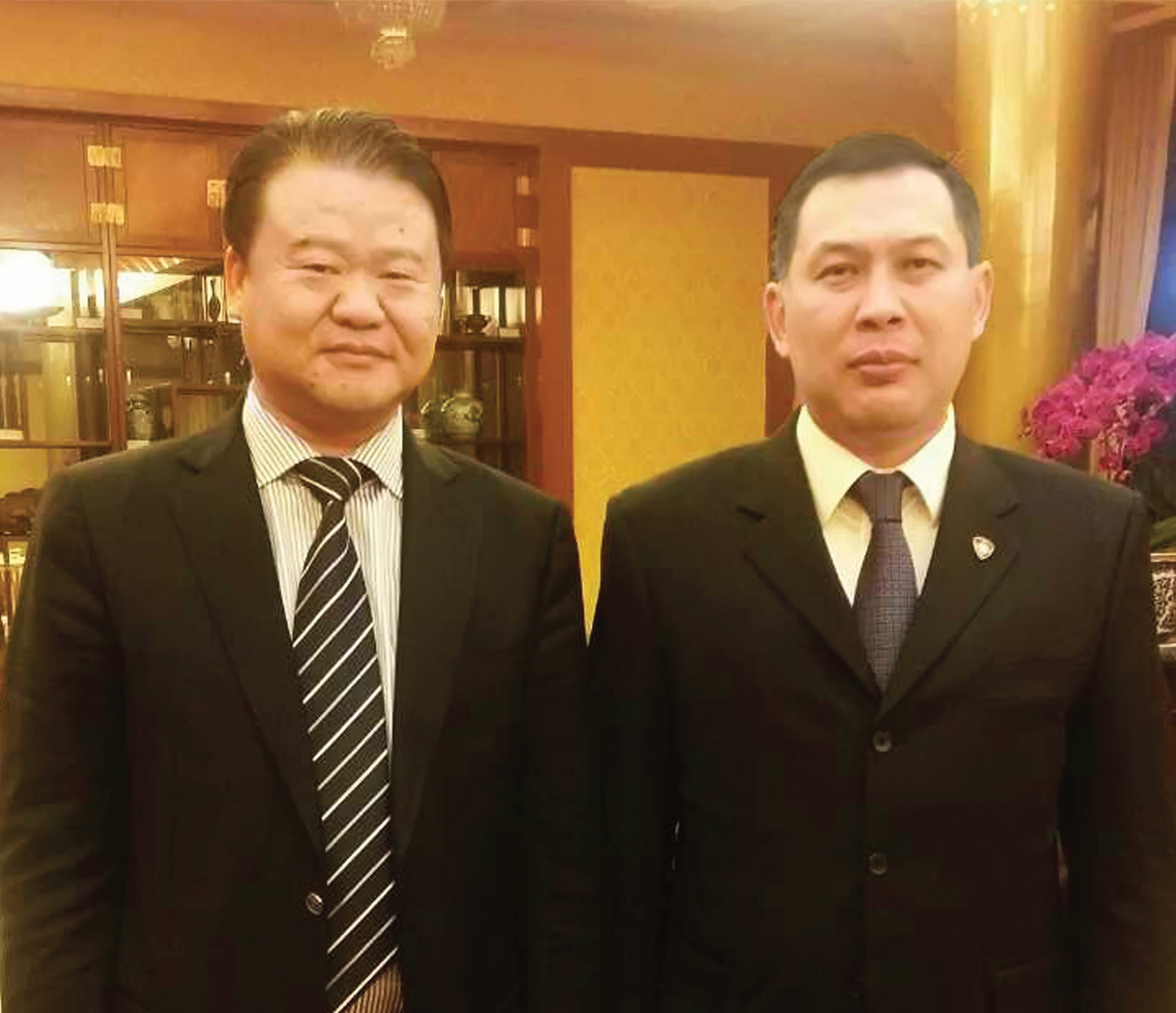 國新家用電梯董事會長沈利國與哈國駐華特命全權負責大量沙赫拉特 努雷舍夫全家福照片